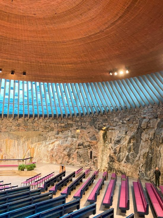 A soli 10 minuti a piedi dalla Cappella del Silenzio, vi attende una delle architetture più affascinanti e strane di Helsinki: la Temppeliaukion Kirkko, meglio conosciuta come Chiesa nella Roccia.
